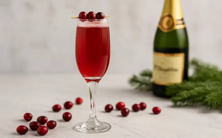 Celebrate with a sparkling cocktail combining McLaughlin’s Cranberry Moonshine and champagne. Served in a flute and garnished with fresh cranberries, it’s festive, crisp, and delightfully fruity.