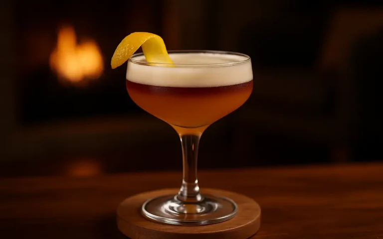 Delight in a frothy, sophisticated cocktail featuring Maple Whiskey, bright lemon juice, and silky egg white for a creamy texture. Topped with a float of Devil’s Juice #5 and finished with a cherry garnish, this drink offers a balanced mix of sweetness, citrus, and warmth—perfect for refined sipping or special occasions.